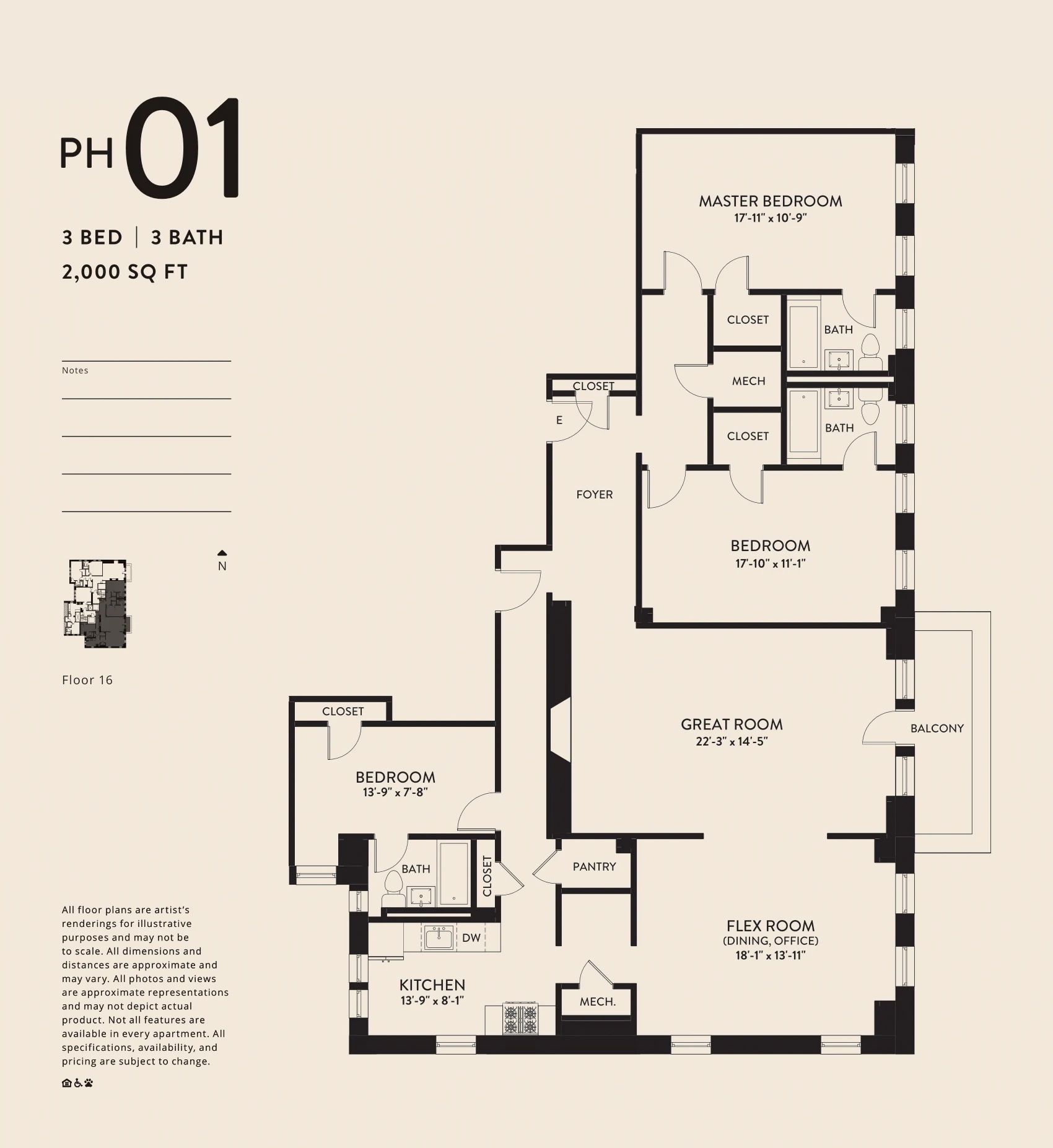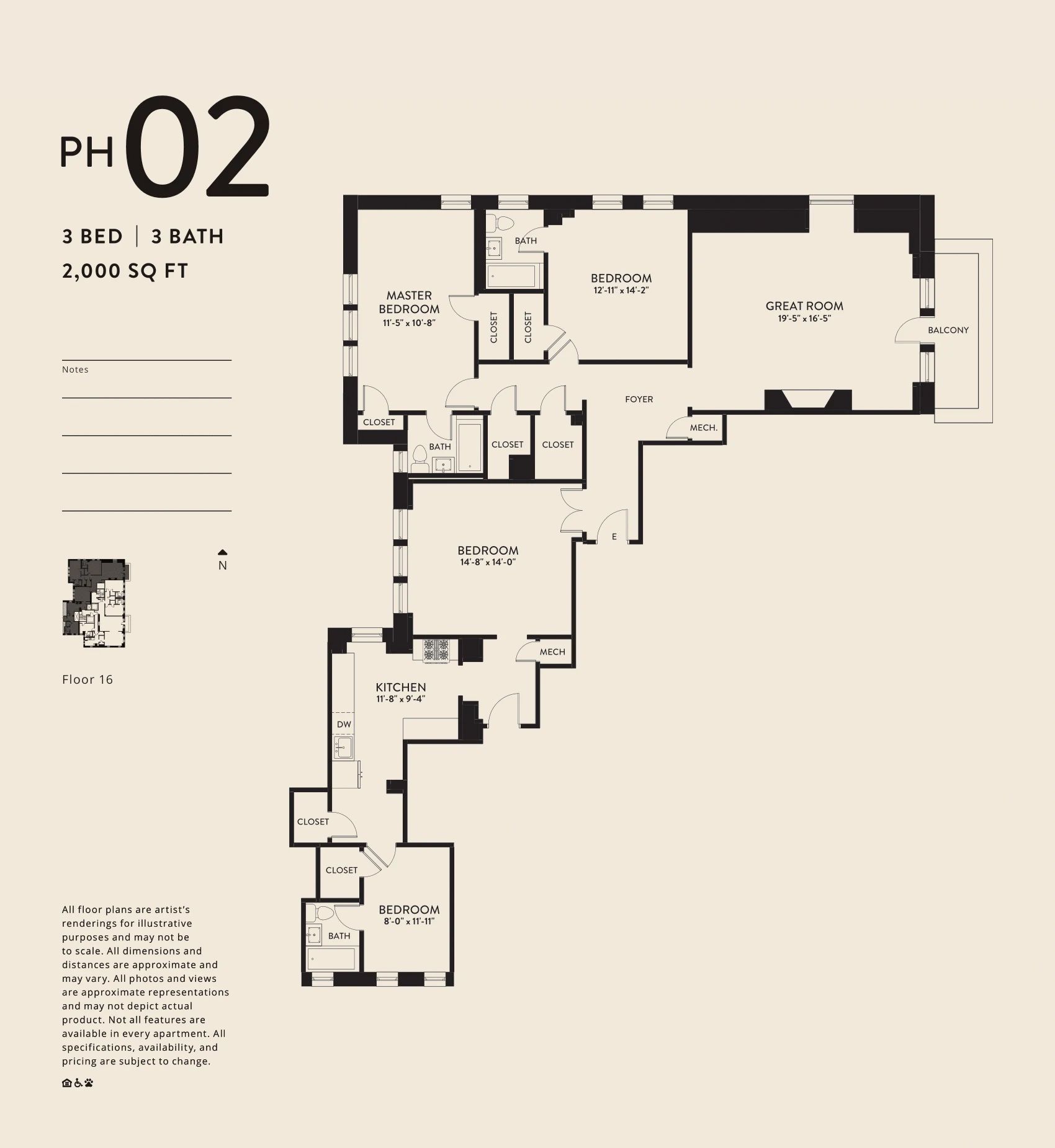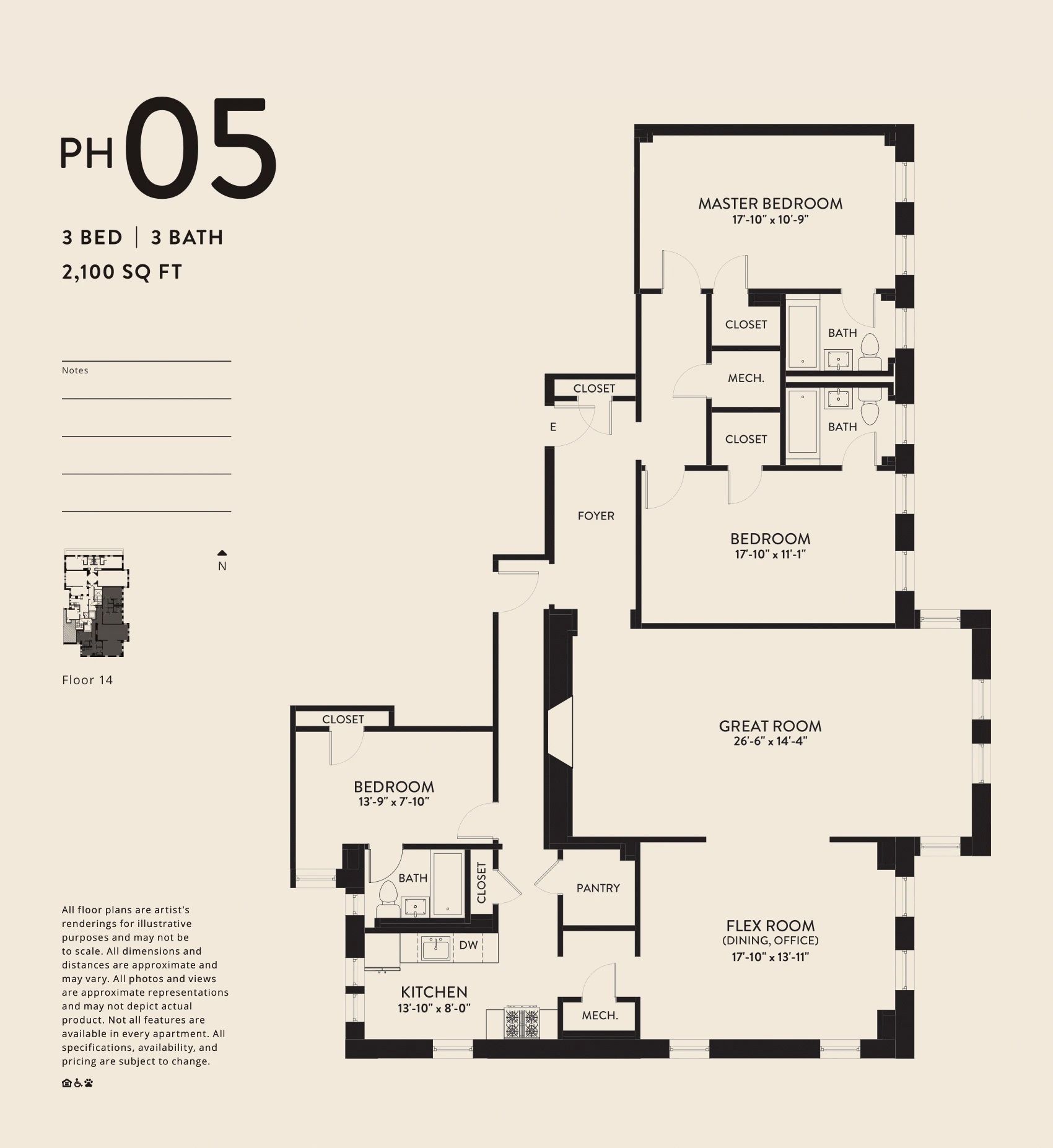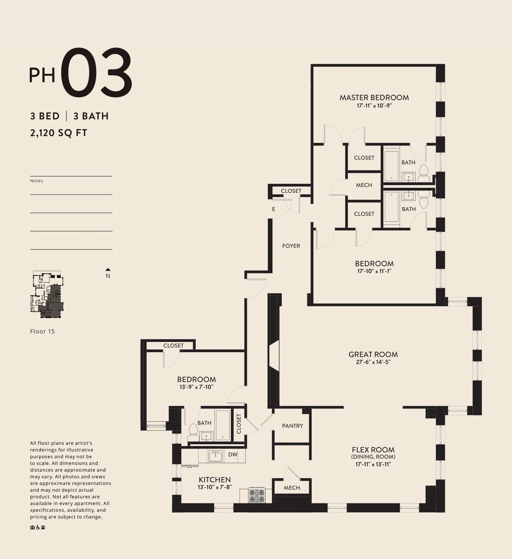 Browse through our 2 - 3 bedroom penthouse apartment home floor plans